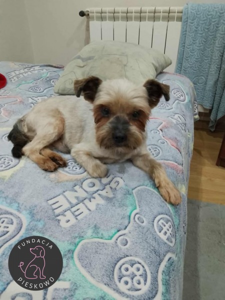 Oli to 6-7 letni samczyk w typie yorka. Jest miłym, przyjaznym i spokojnym psiakiem, jednak lubi mieć "swojego człowieka" na wyłączność- wtedy bardzo chce się do niego tulić i z nim bawić. Sugerujemy więc, by Oli zamieszkał w domu bez małych dzieci i innych zwierząt. Nasz podopieczny ładnie chodzi na smyczy. Na spacerach nie reaguje na inne psy i koty. Kuleje troszkę na tylną prawą nóżkę (tak już ma), ale nie przez cały czas. Gdy się położy na tapczan, nie lubi być przesuwany- wówczas warczy. Strach i złość wzbudzają w nim czynności pielęgnacyjne- strzyżenie, suszenie, wycieranie łap itp. Są to jednak zachowania do okiełznania. Oli potrafi podskakiwać, spryciak wskoczy na krzesło i stół. W domu nie reaguje na innych ludzi, raczej domaga się od nich pieszczot, dzwone